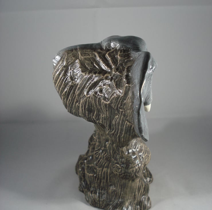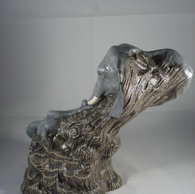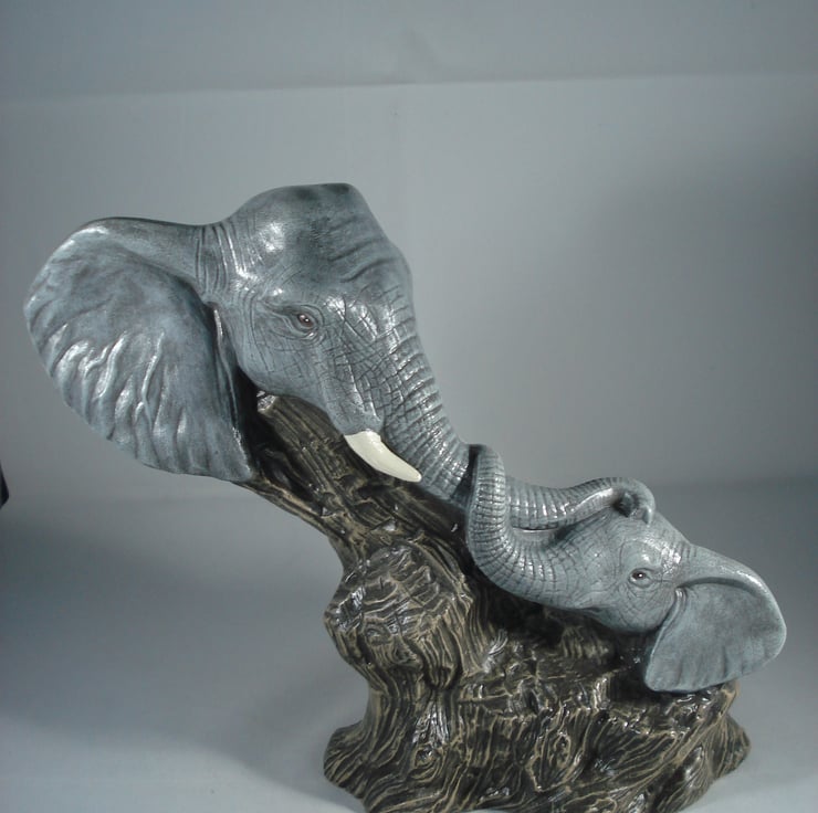 I have for sale a ceramic animal ornament, which was hand painted by myself. It looks like a piece of brown driftwood, which has the beginnings of a carving of a mother elephant and her baby. It has just their heads and trunks showing, with their trunks entwined together. This would make a lovely addition to anyone's home, or perhaps given as a gift.