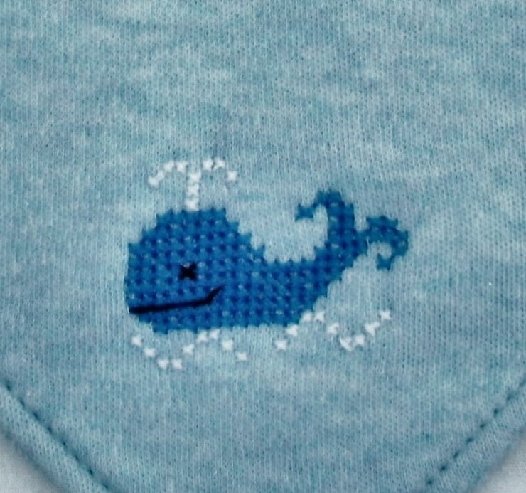 I love my little smiley, spouting whale and the colour of this bib suggested the sea.