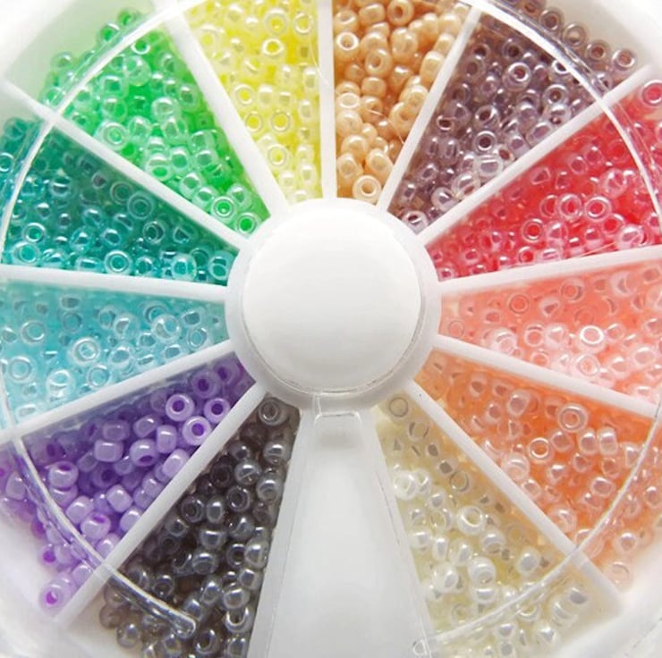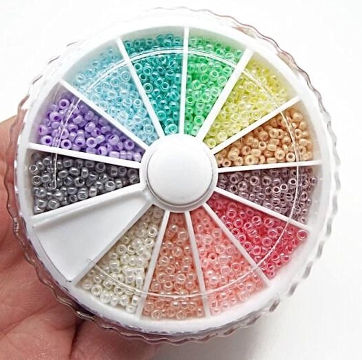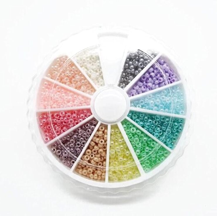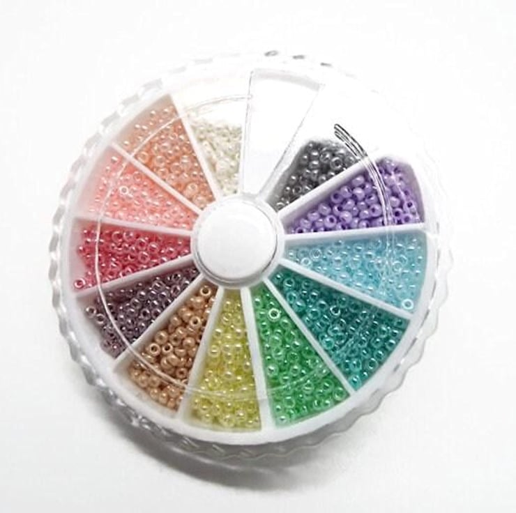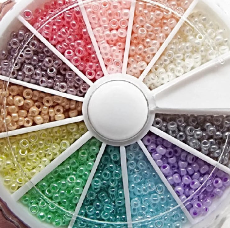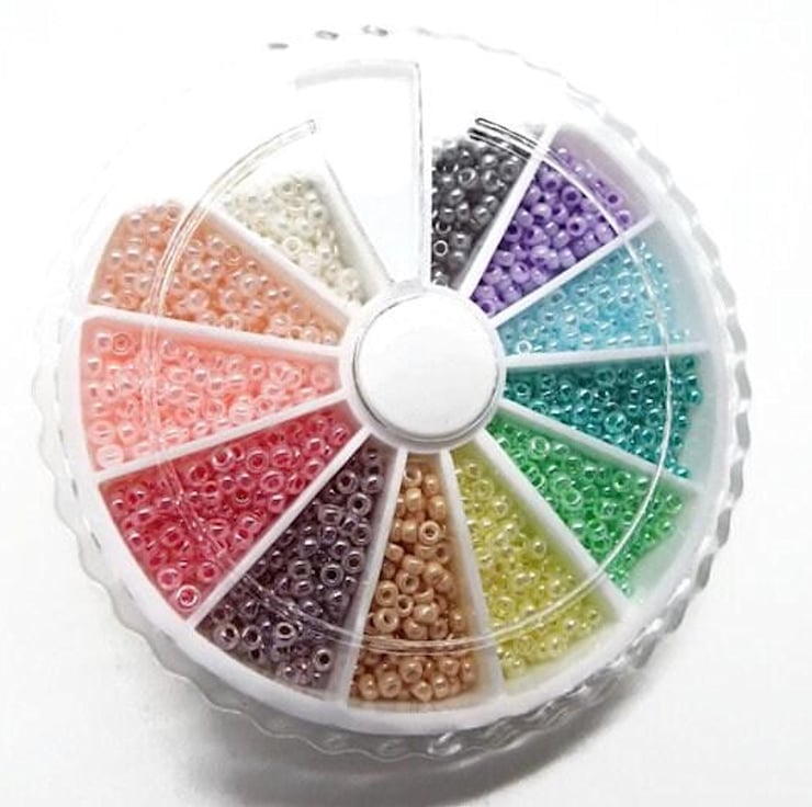 12 Section Bead Wheel with at least 1800 Miyuki 11/0 Rocailles in Pastel Rainbow Colours