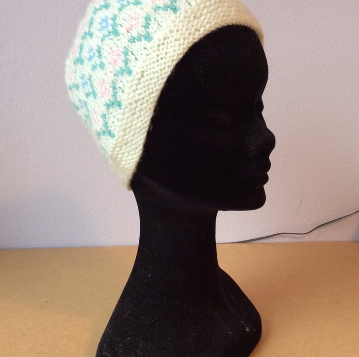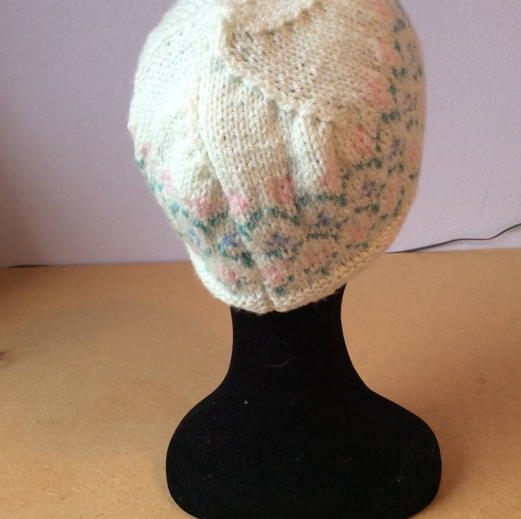 Pretty pull on hand knitted hat.
