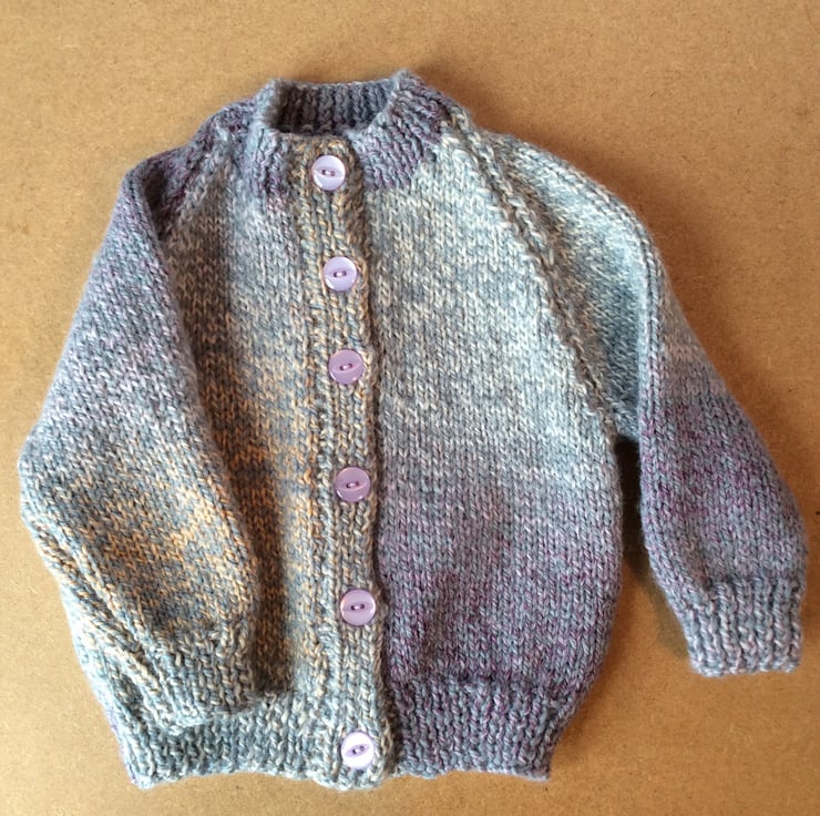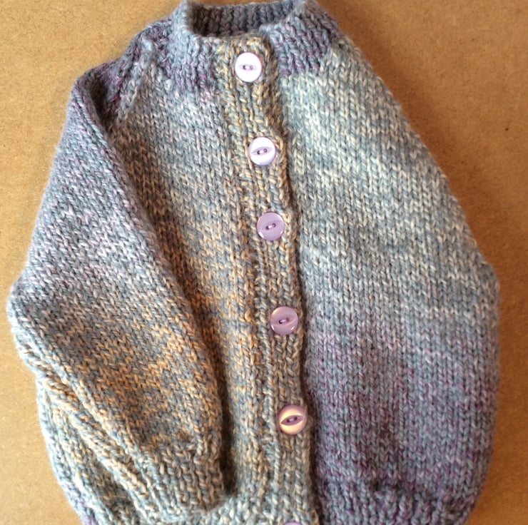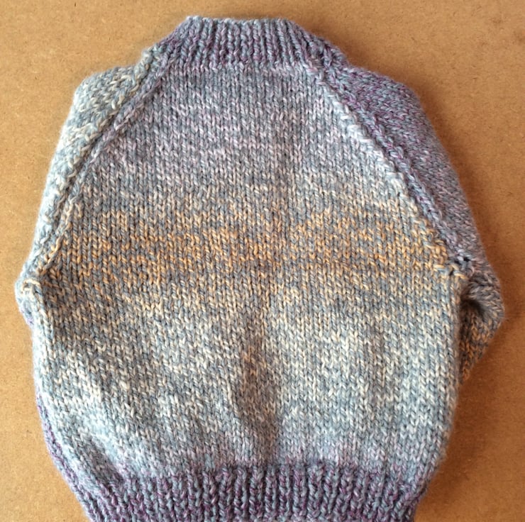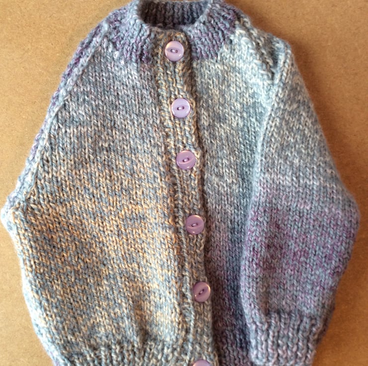 Multi colour yarn, predominantly mauve with flecks of yellow, cream and grey.