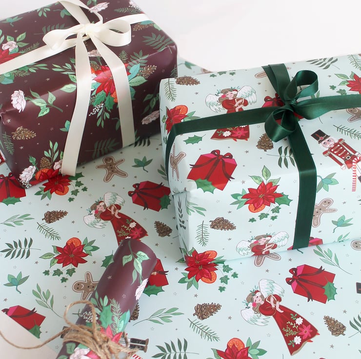 This design was created from illustrations I made for a daily Instagram challenge during advent. Each day from December 1st 2017 until Christmas day, I posted an advent countdown image. The result was lots of imagery to build a new collection of Christmas gift wraps and cards.