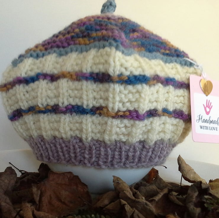 This is a genuine designer product. It has not been reproduced from any commercially published knitting pattern. Please respect the designer's full time profession, skills and modest income for hours of quality workmanship by not trying to replicate it. This incl6 using different colourways, stitch formations, and trims