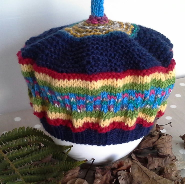 An eye catching unique unisex baby beret style hat hand knitted and design by Demelza Designs using quality British branded manufactured yarns which are machine washable. This would make a perfect quality newborn/baby shower gift for either sex any mother would love to receive for her little one.