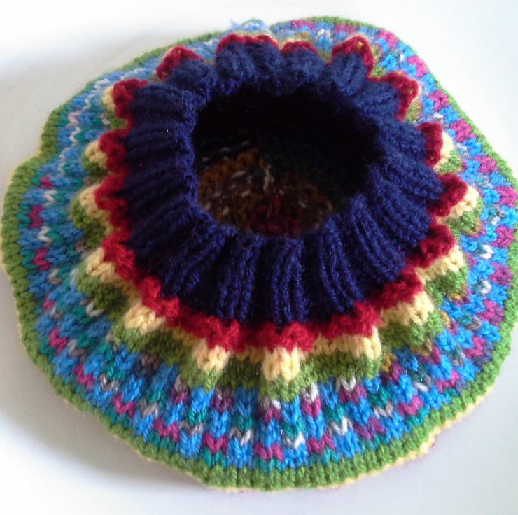 This is a genuine designer product. It has not reproduced from any commercially published knitting pattern. Please respect the designer's full time profession, skills and modest income for hours of quality workmanship by not trying to replicate it. This includes using different colourways, stich formation designs and trims.