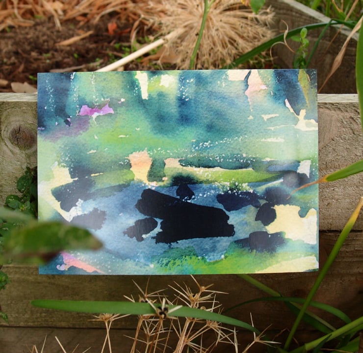 The original painting is a watercolour sketch I made while staying with friends in a village near Farnham in Surrey some years ago. I was inspired to paint the camp fire, when no-one else was around, the morning after we had all been gathered around it. I have only recently made it into a card.