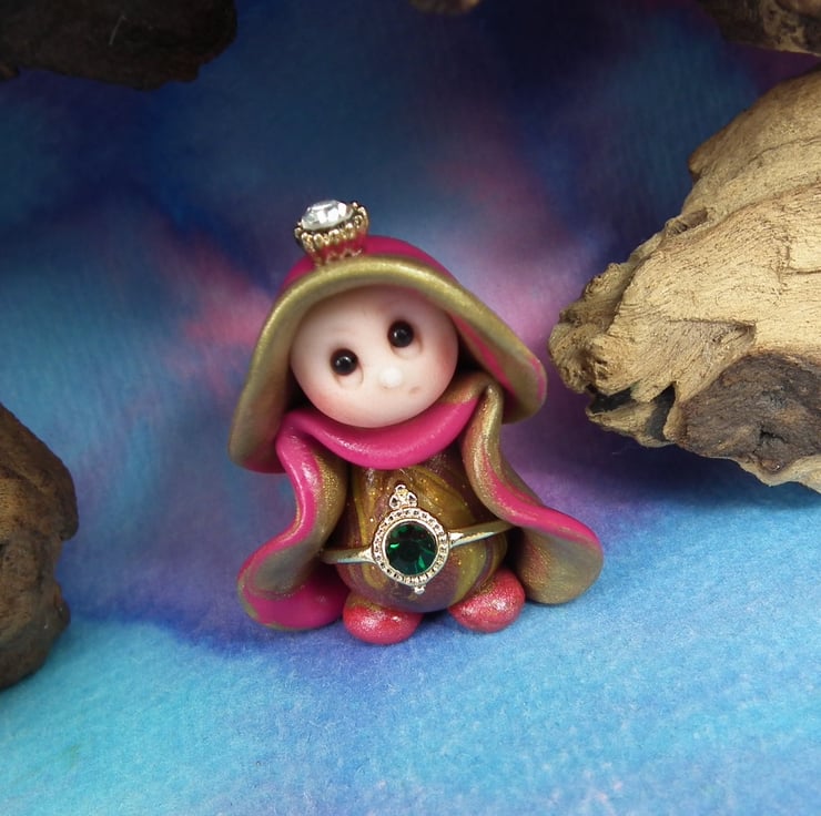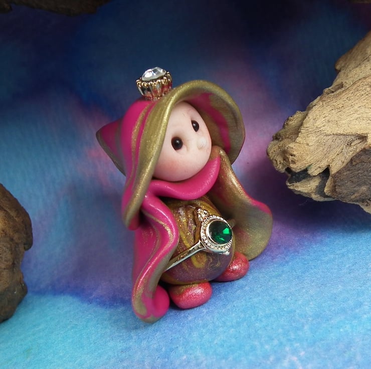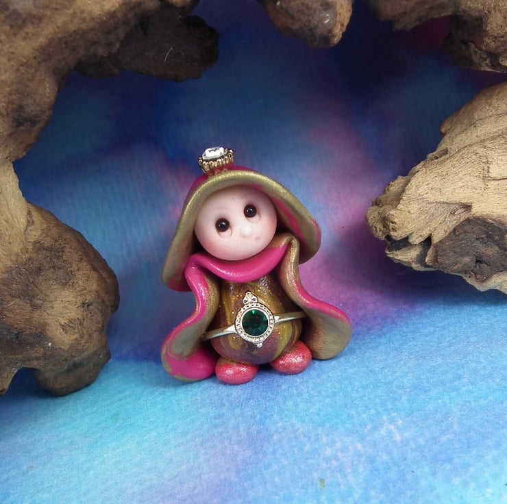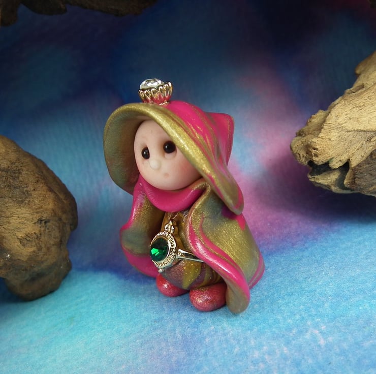 This is a 'one of a kind' creation having been entirely handmade without the use of moulds here at my studio on the Sussex Coast. Modelled with Prosculpt polymers, painted with heat set paints before sealing with lacquer, Princess Clara has sparkling black onyx eyes. Princess Clara the Royal Gnome is just one and a half inches tall.