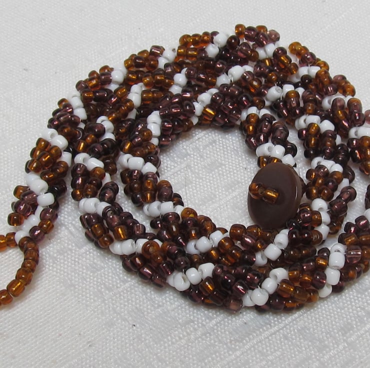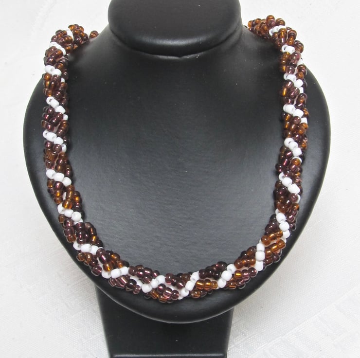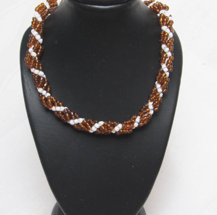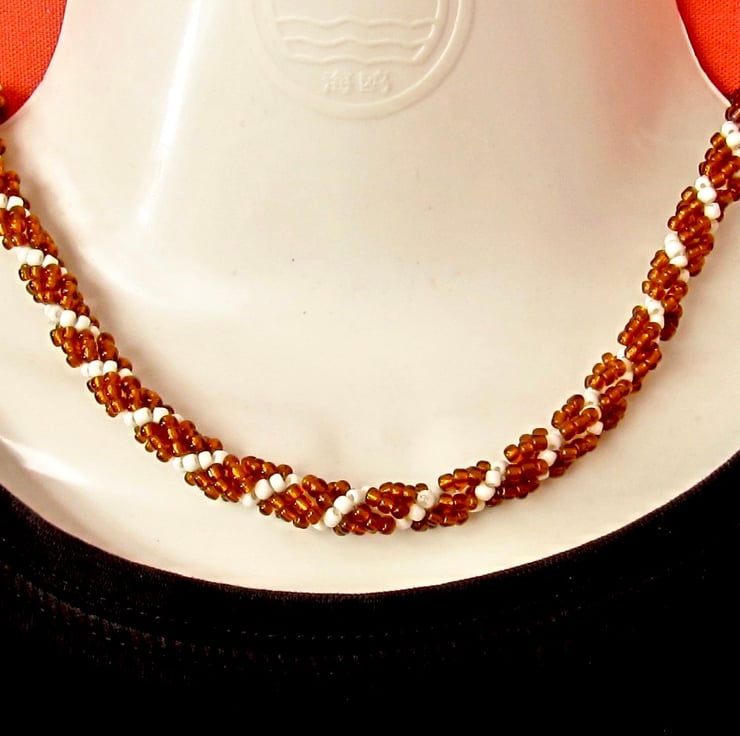 Slimline Choker: Amber Coloured & White Seed Beads in a Spiral Weave
