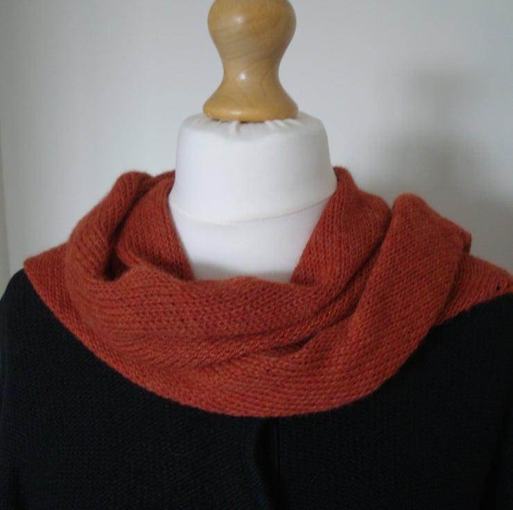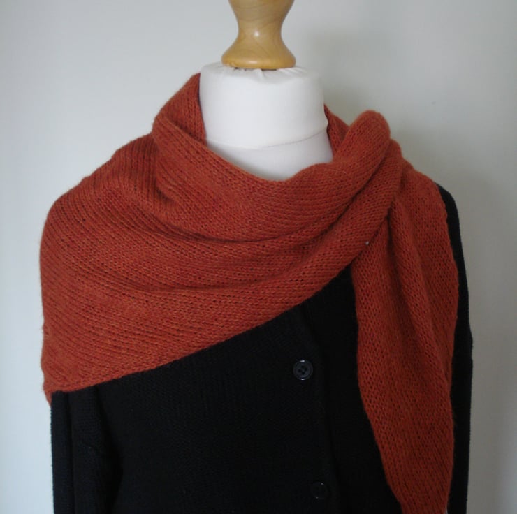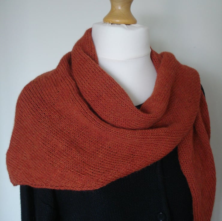 This cosy knitted wrap is made from 100% alpaca wool, making it beautifully soft and luxurious. It will make a much loved addition to your wardrobe, or a wonderful gift. It has been lovingly hand made on a domestic, hand-operated knitting machine, and features subtle eyelets along two sides.