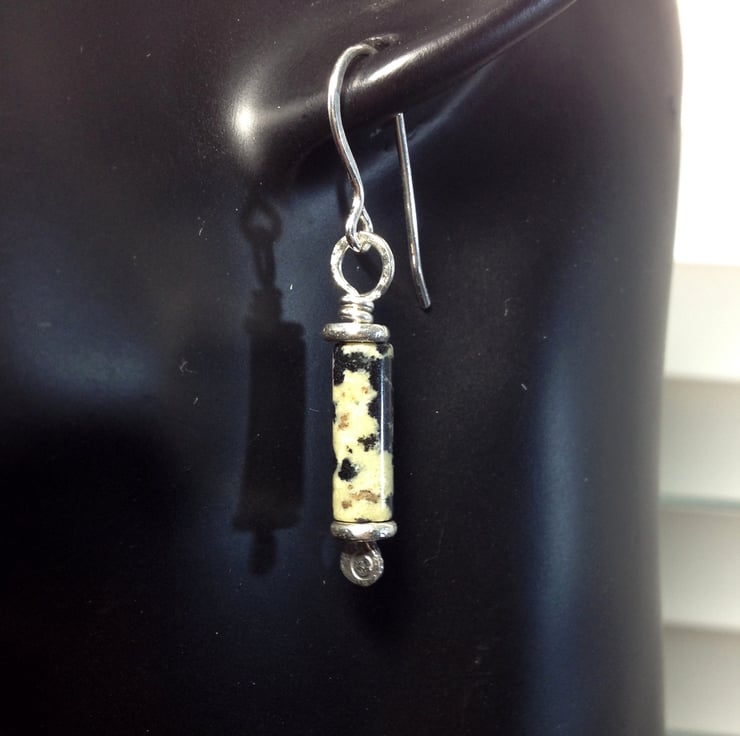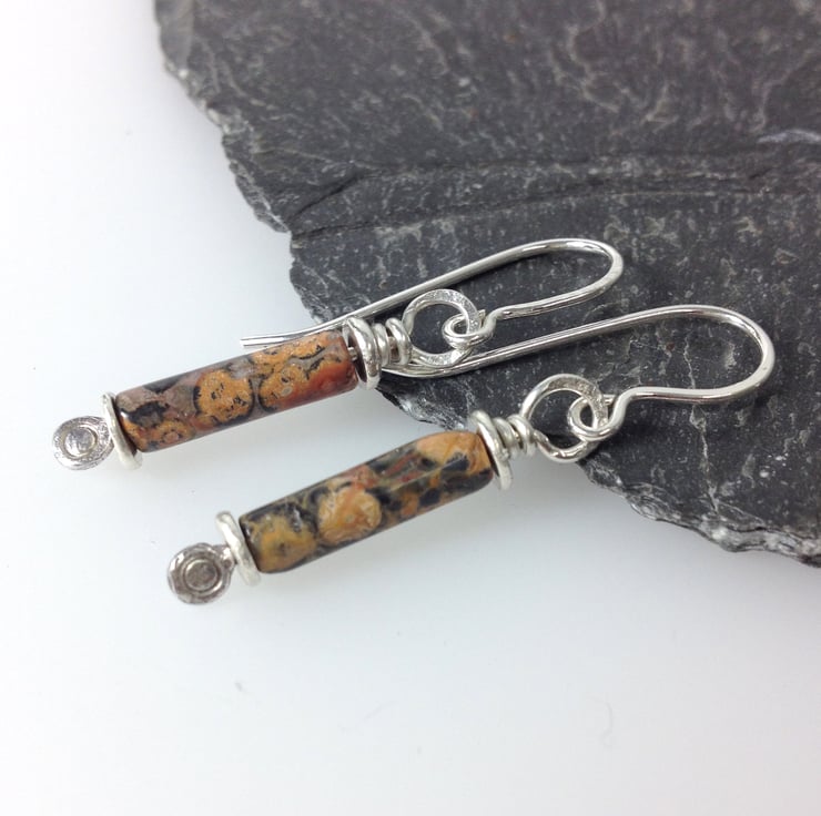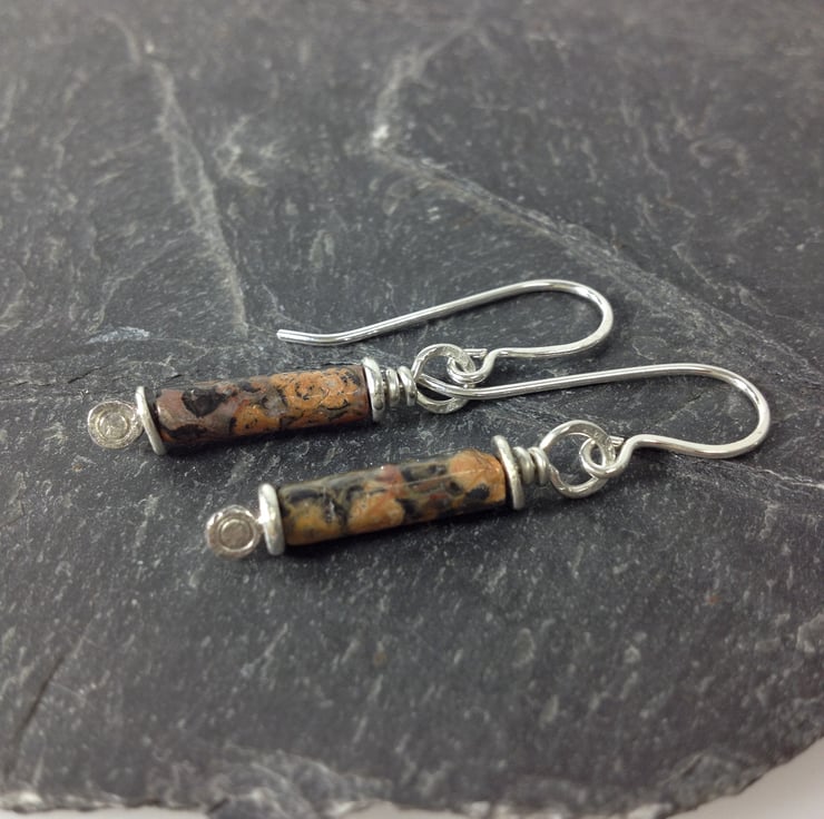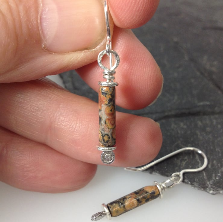 Forged sterling silver pins have been threaded through small silver washer beads and autumnal coloured jasper tubes.