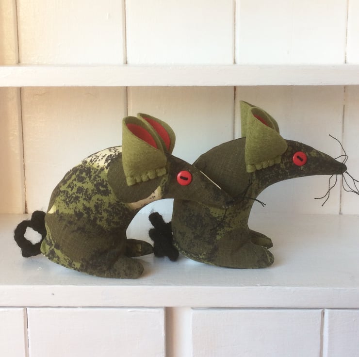 Mouse made with Vintage green and olive fabric with red ‘berry’ buttons from WittyDawn.