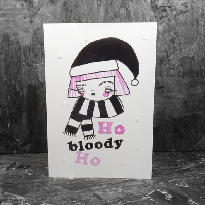 This listing of for a set THREE of cards from the 2018 Twinkle & Gloom Christmas Card range. This design is a girlie who's less than impressed with the season.