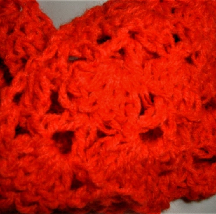 this scarf has been lovingly crocheted in a quality Scarlet acrylic yarn.