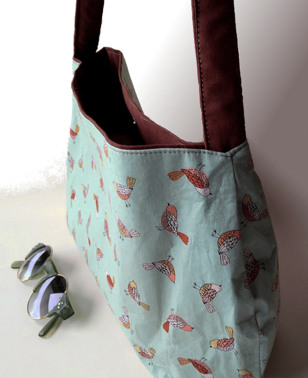 Here we have a beautiful shoulder bag, covered in pretty birds.