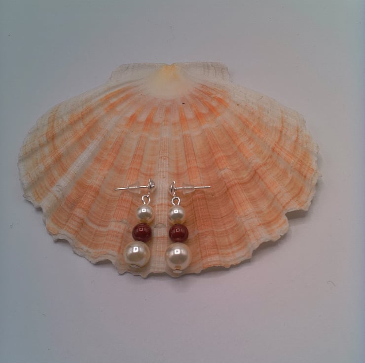 This pretty delicate pearl jewellery set comprises a necklace, bracelet and pair of earrings. It is light and easy to wear everyday. The set is made using 8 mm cream pearls and 6 mm cream and maroon pearls. The necklace and bracelet are fasted with silver plated toggle clasps and the earrings have silver plated ear wires. The necklace is 18 inches (46 cm) in length, the bracelet is 7.25 inches (18.5 cm) in length and the earrings have a drop of 1.5 inch (3.5 cm). The jewellery set will be dispatched wrapped in tissue paper in an organza bag, and delivered via Royal Mail first class post. This classic set would look great for any occasion and it would make a lovely gift.