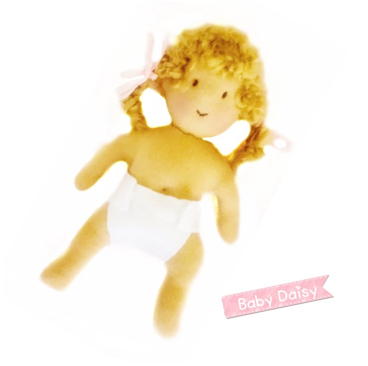 A cute little baby doll - Mo’s baby sister - dressed in a removable nappy. The 16cm doll is made from CE safe best quality de Witte doll skin from Holland and her hair is pure mohair. Outfits and accessories for baby Daisy are also available.