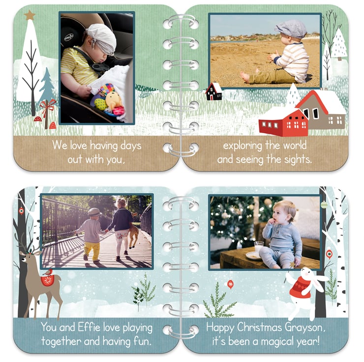 Christmas Friends features a gorgeous woodland Scandi style snowy theme full of little animals. A charming Christmas keepsake, they’ll love reading the words you’ve written and seeing photos of themselves & family. Pop it in their stocking or under the tree for a truly special festive gift!