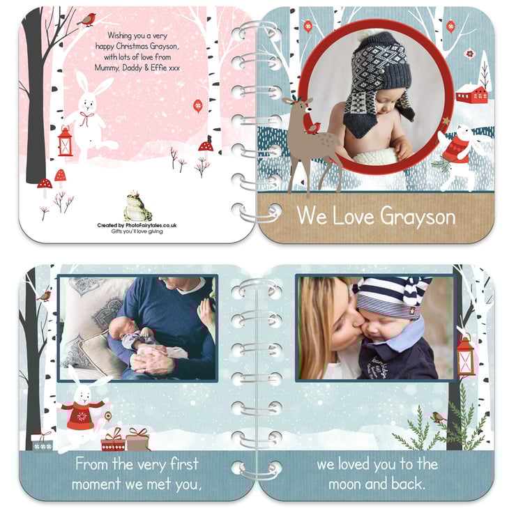 Looking for a truly unique gift for your baby or toddler this Christmas? This handmade personalised board book will become a firm favourite, and your little one will adore snuggling up with you to read their own book that’s been made especially for them. Full of beautiful illustrations, and personalised with your own text and photos throughout, this is a really special Christmas keepsake.