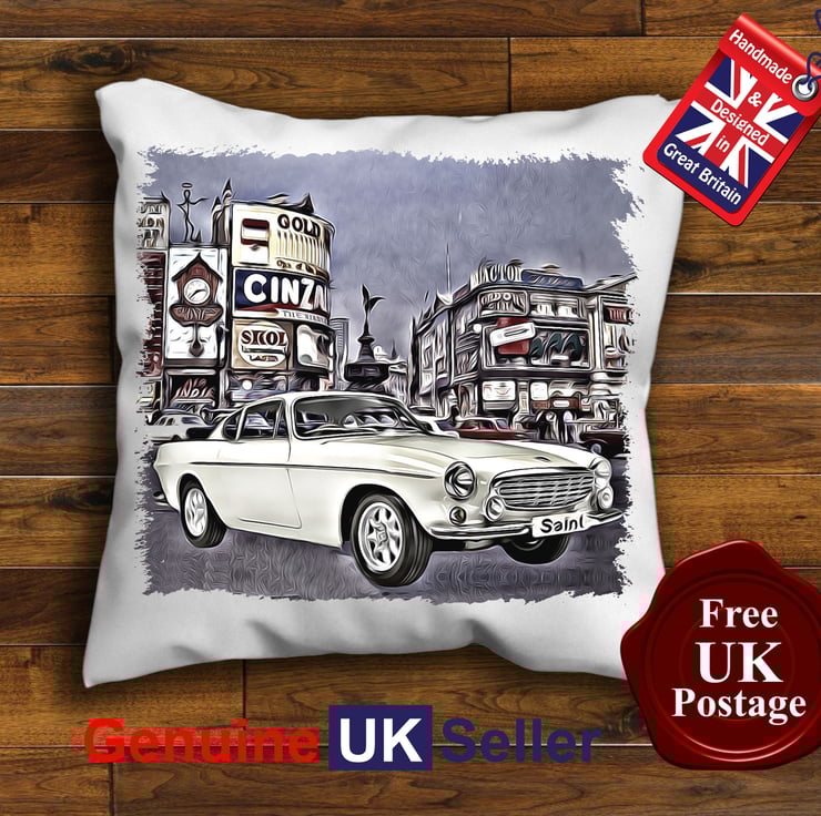 Unofficial Fan Inspired Volvo P1800 Cushion Cover, The Saint Car, Car Cushion Cover Choose Your Size, Handmade with a zip for cover removal. Our Cushion Covers are designed and Printed by us Aggie’s Bags, our covers are overlocked to give it strength and structure.