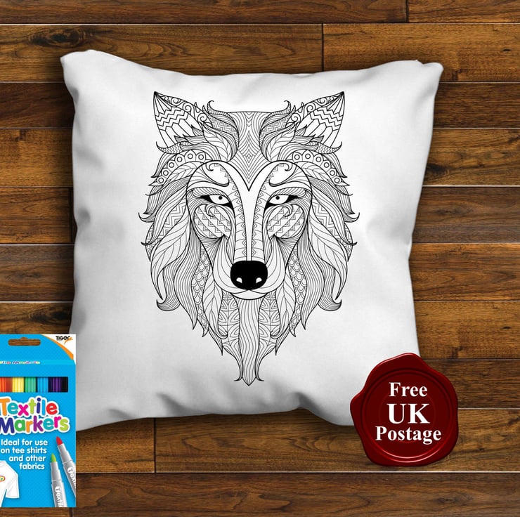 Fox Head Colouring Cushion Cover, Colouring in pillow Graffiti pillow Cover, With or Without 8 x Fabric Pens, Choice of sizes, Handmade with a zip for cover removal.