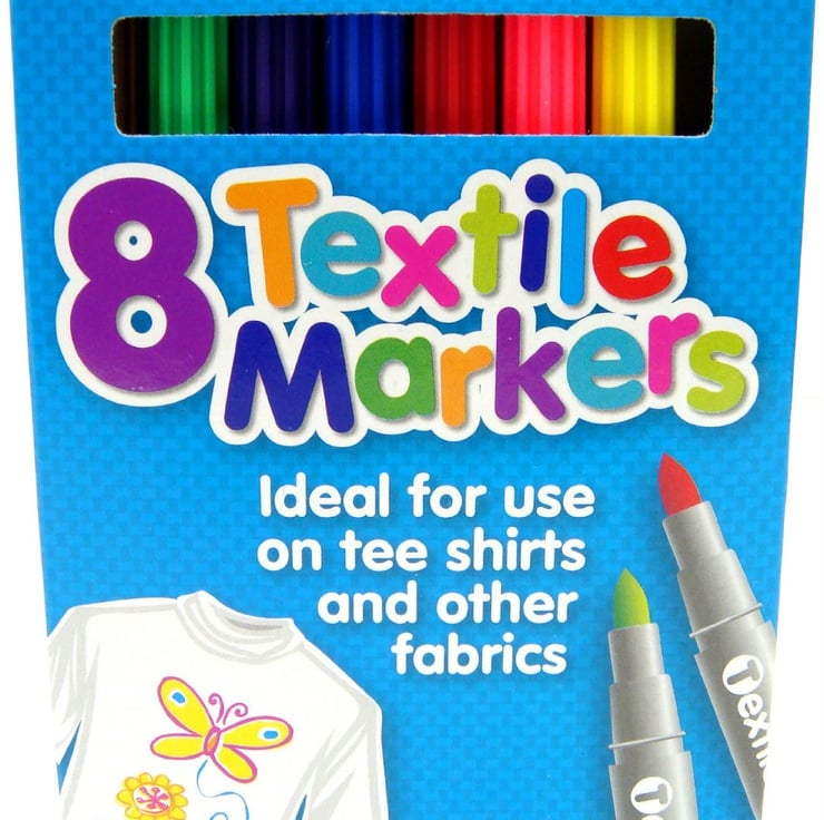 If you choose the pens option you get Pack of 8 Non-Toxic Ink Textile Marker Pink, Purple, Blue, Red, Green, Brown, Yellow and Black Ventilated Cap Ideal for use on Tee Shirts and other Fabrics AGES 3 Plus