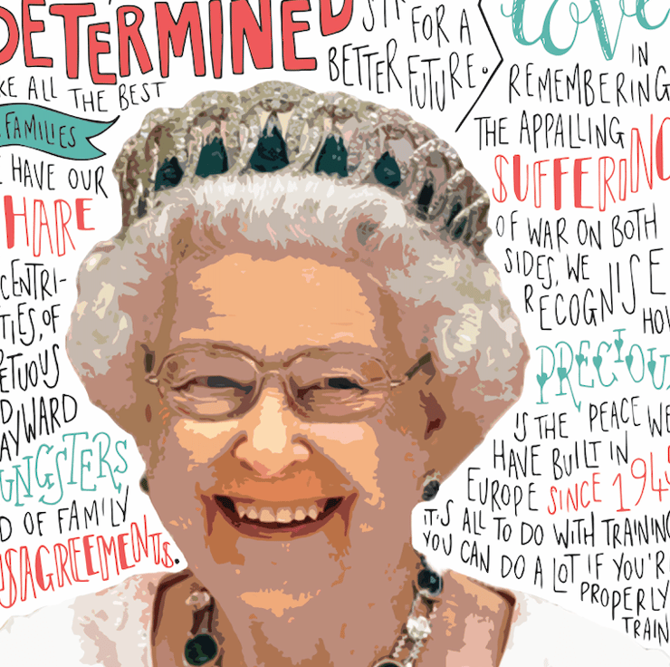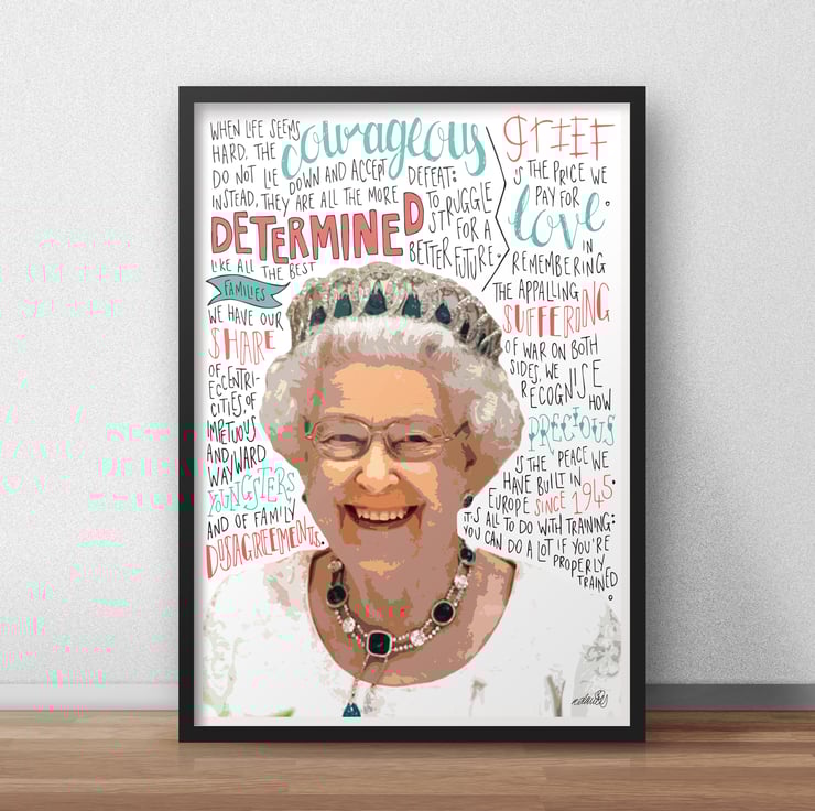 Queen Elizabeth the Second inspired poster / print featuring inspirational quotes.