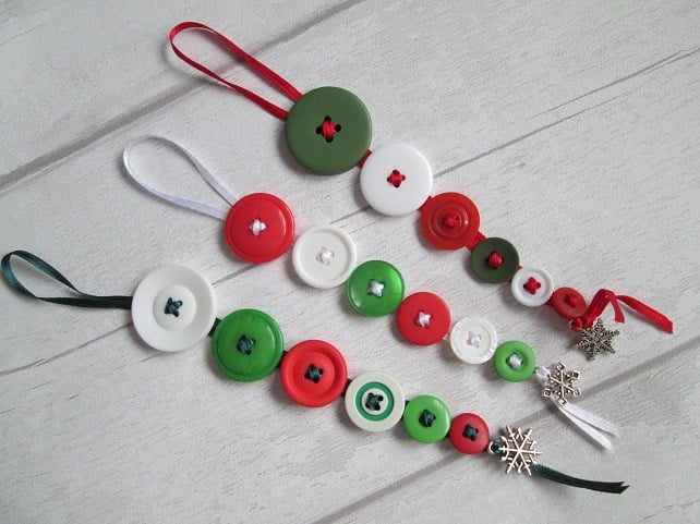 Set of Three Festive Button Dangle Christmas Tree Decorations