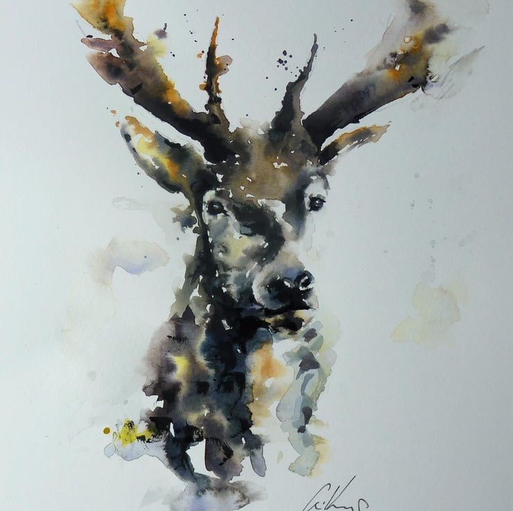 My paintings are inspired by places, memories and feelings. Sometimes I start with a sky and see where it leads me. This particular painting of a majestic Stag Head, I really like the way this painting turned out, it has a dreamy, slightly abstract feel to it.