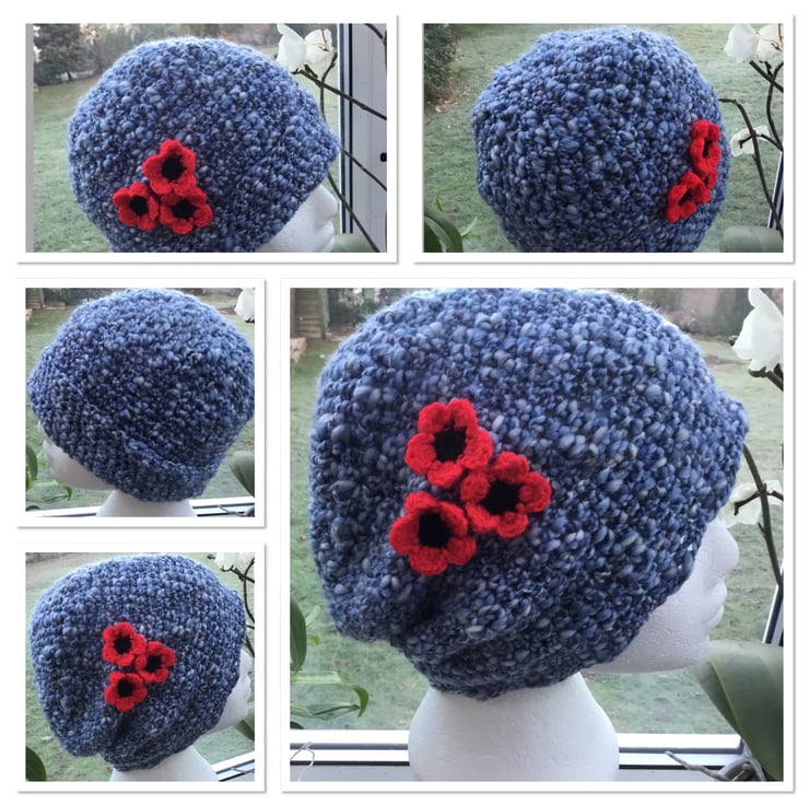 This beautiful hat is hand crocheted on a large hook, to give a loose, soft stitch, totally designed and hand crocheted by myself, in a classic style, but allowing you the option to wear with the turn over, or without giving a more slouchy look.