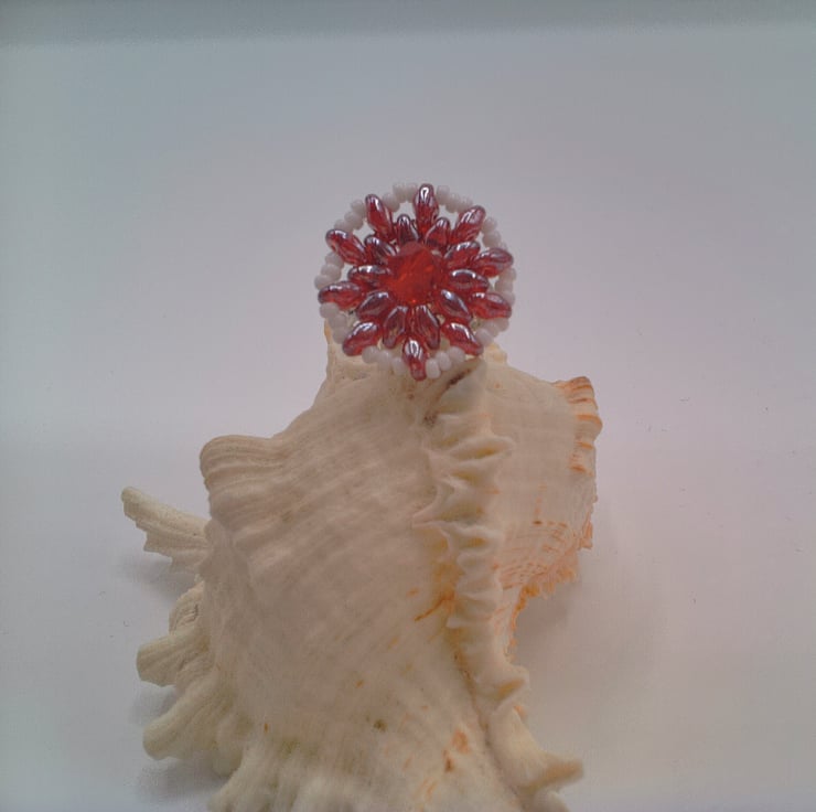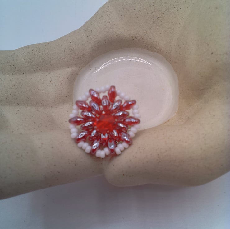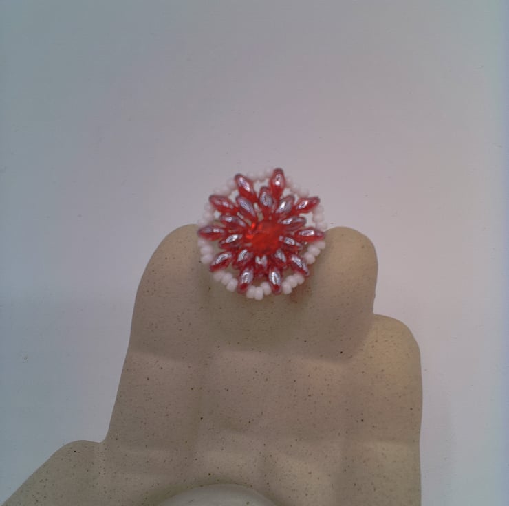 Red and White Mandala Adjustable Ring, Red and White Mandala Ring, Gift for Her, Birthday Gift, Anniversary Gift, Statement Ring, Cocktail Ring, Beaded Ring, Mandala Ring