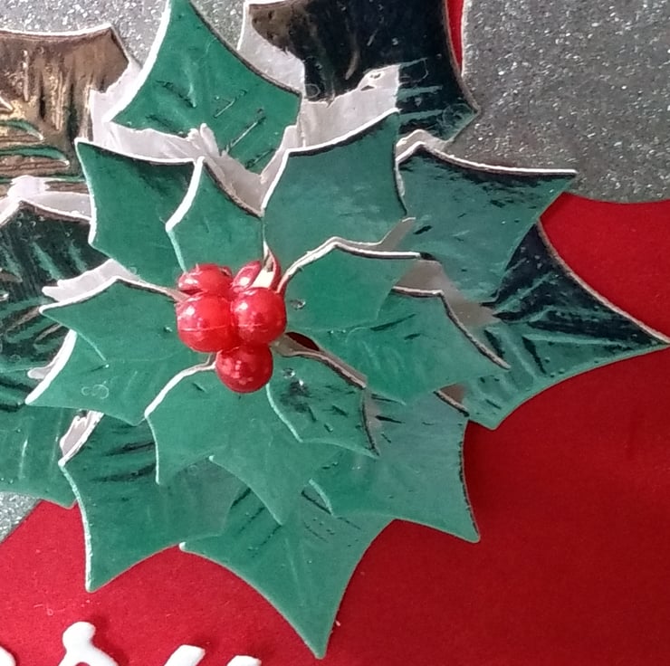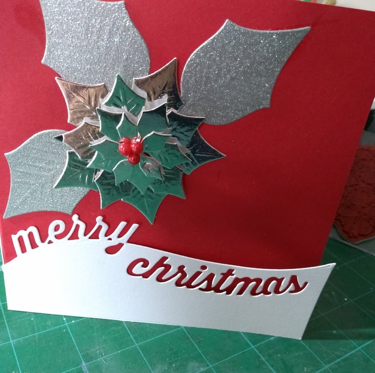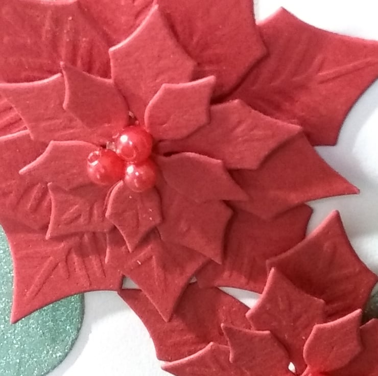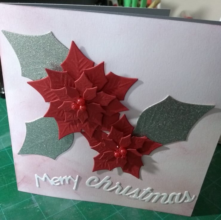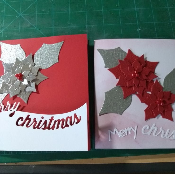 A completely handmade and uniquely designed pack of 2 cards. Consisting of quality cards which have die cut poinsettias. All with bead centre's.