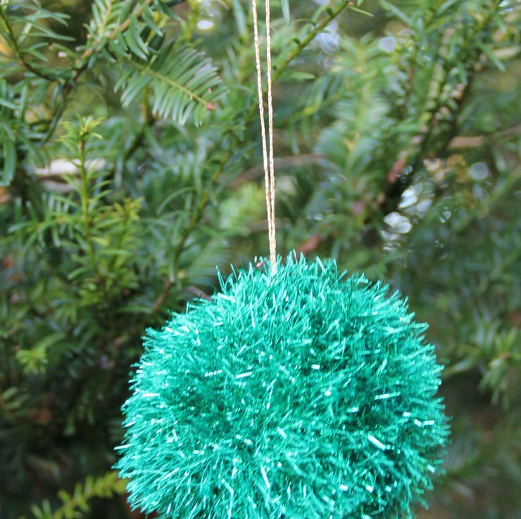 This large fluffy Green bauble measures 10cm in diameter & will add sparkle to any tree this Christmas.