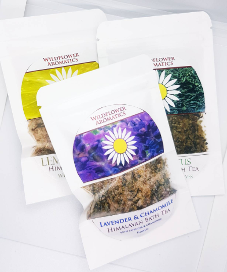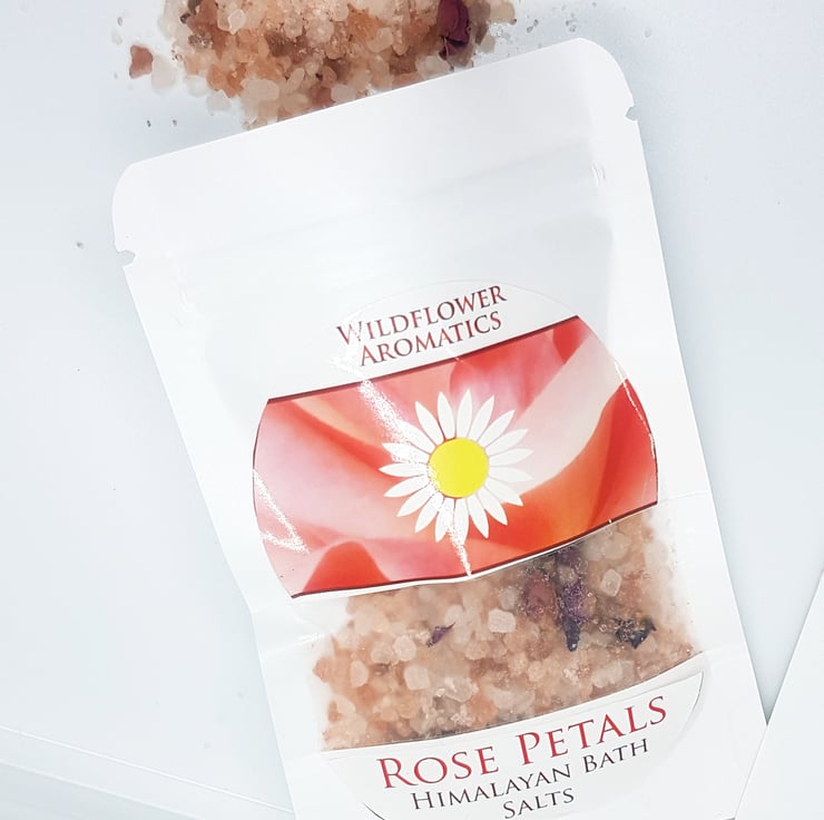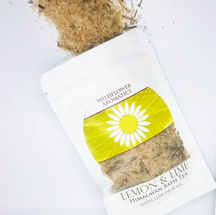 Each gift bag comes with a small muslin bag which can be used to hold the botanicals whilst the salts disperse in the water. And 4 x 50g pouches of Aromatherapy bath salts.