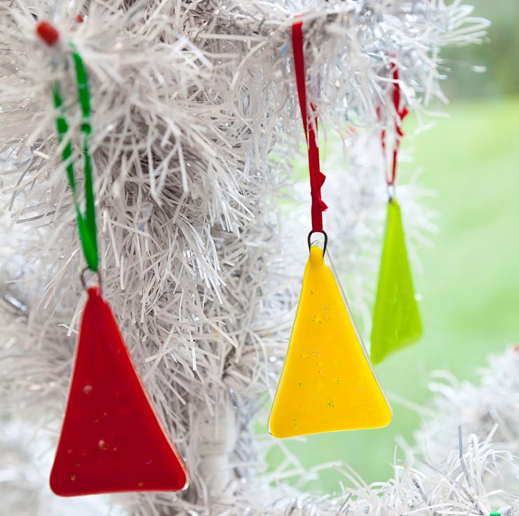 Brighten up the Christmas tree this year with some brightly coloured glass Christmas tree decorations! Each one has been individually hand-cut and sprinkled with dichroic flakes adding an extra bit of sparkle to the tree.