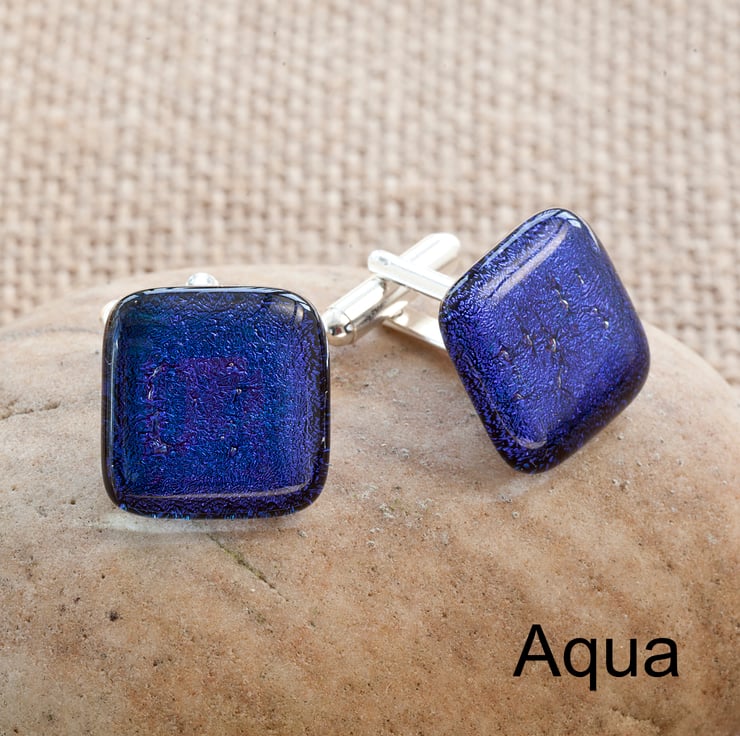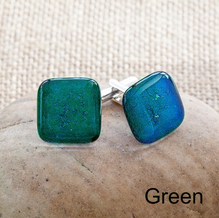 Handmade dichroic fused glass cufflinks available in a range of different colours to suit any outfit and for any occasion. They are all supplied in a jewellery box making them the perfect gift.