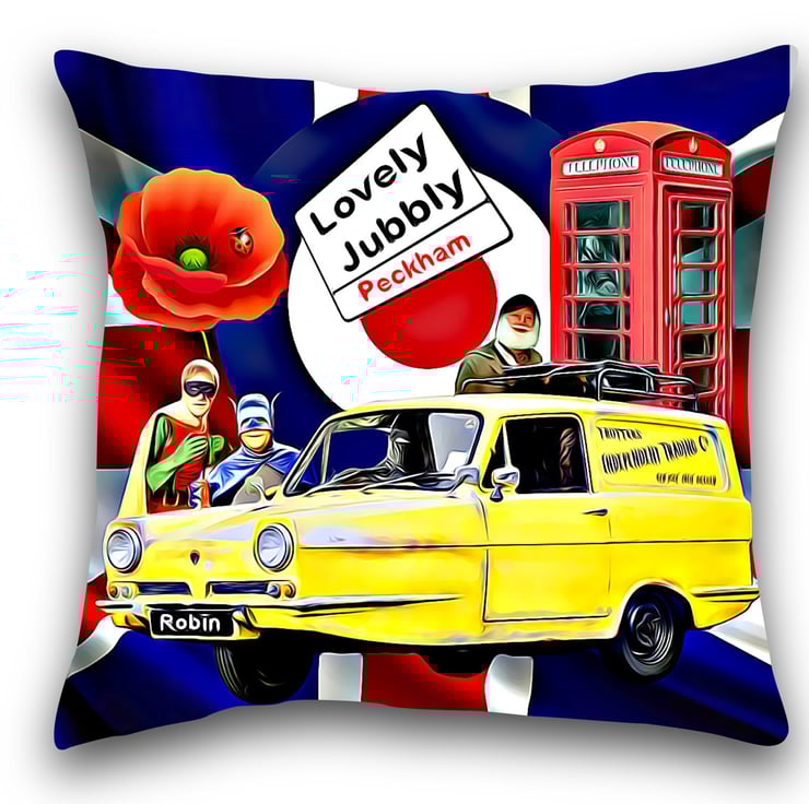 Unofficial Fan Inspired Robin Reliant Cushion Cover, Choose Your Size, Handmade with a zip for cover removal. Our Cushion Covers are designed and Printed by us Aggie’s Bags, our covers are overlocked to give it strength and structure.