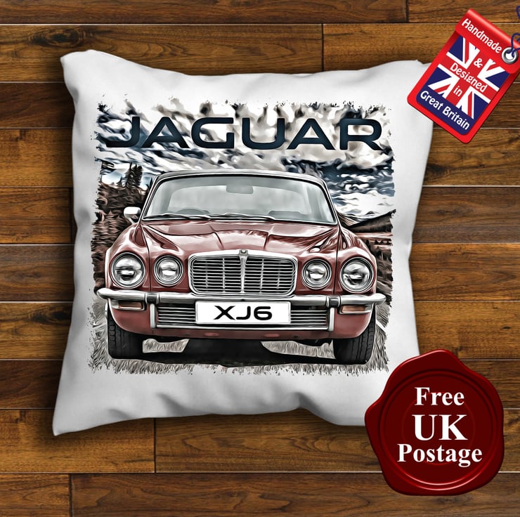 Jaguar XJ6 Cushion Covers Choose Your Size, Handmade with a zip for cover removal. Our Cushion Covers are designed and Printed by us Aggie’s Bags, our covers are overlocked to give it strength and structure.