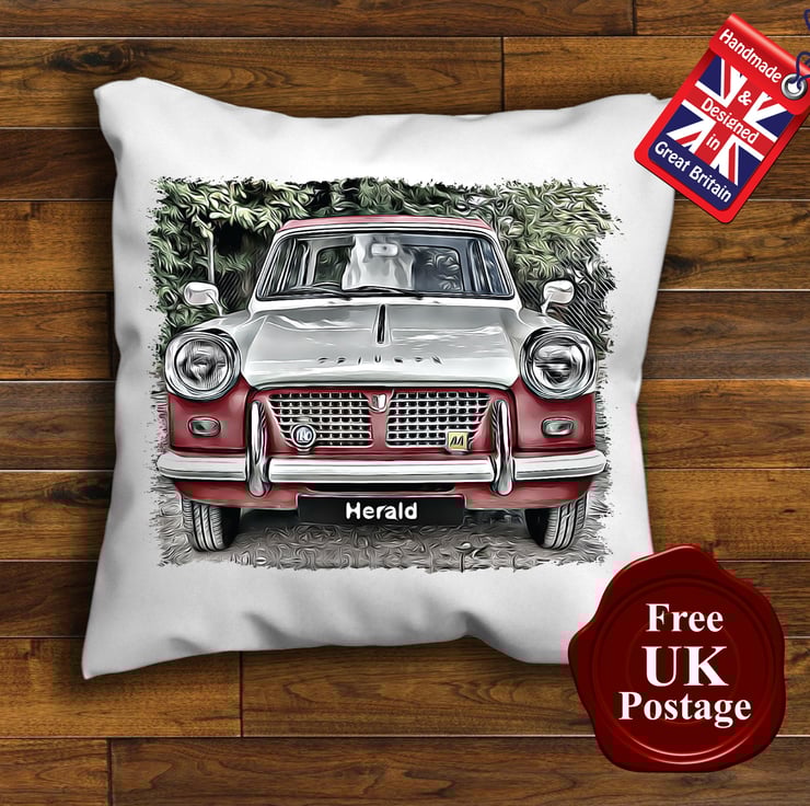 Triumph Herald Cushion Covers Choose Your Size, Handmade with a zip for cover removal. Our Cushion Covers are designed and Printed by us Aggie’s Bags, our covers are overlocked to give it strength and structure.