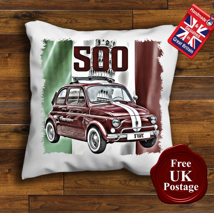 Classic Fiat 500 Cushion Covers Choose Your Size, Handmade with a zip for cover removal. Our Cushion Covers are designed and Printed by us Aggie’s Bags, our covers are overlocked to give it strength and structure.