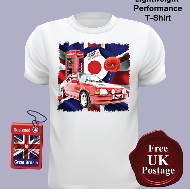 Ford Escort MK4 XR3I T Shirt, Choose Your Size, designed by us Aggies Bags the 169 gsm 100% Polyester cotton feel Ringspun T Shirt is seamed with a single needle 1.9cm collar. Taped neck. Twin needle sleeve and bottom hems. Quarter-turned to eliminate centre crease. Oeko-Tex Standard 100 certified,