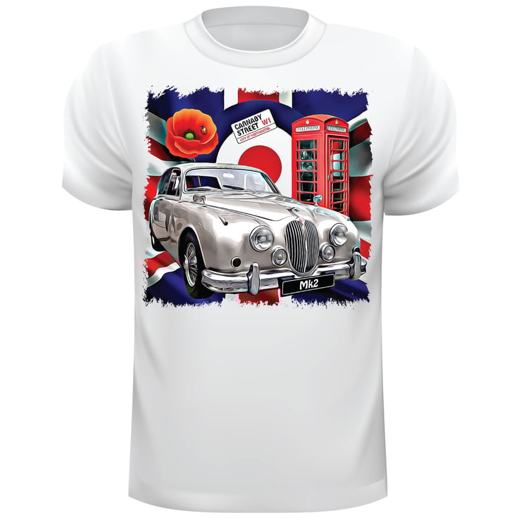 Car Art Design Classic Jaguar MK2 T Shirt Can Be Personalised Unofficial Choose Your Size and any personalisation you would like our Car Art is designed by us Aggies Bags the T shirt is 65% Polyester 35% Cotton 160gsm Slim fit Crew neck Self fabric back neck and shoulder tape Side seams for enhanced fit lightweight Ringspun T Shirt is seamed with a single needle 1.9cm collar. Taped neck. Twin needle sleeve and bottom hems. Quarter-turned to eliminate centre crease. Oeko-Tex Standard 100 certified,we take a lot of pride in what we do, our own unique designed T Shirts make a wonderful gift or just treat yourself.