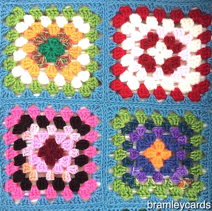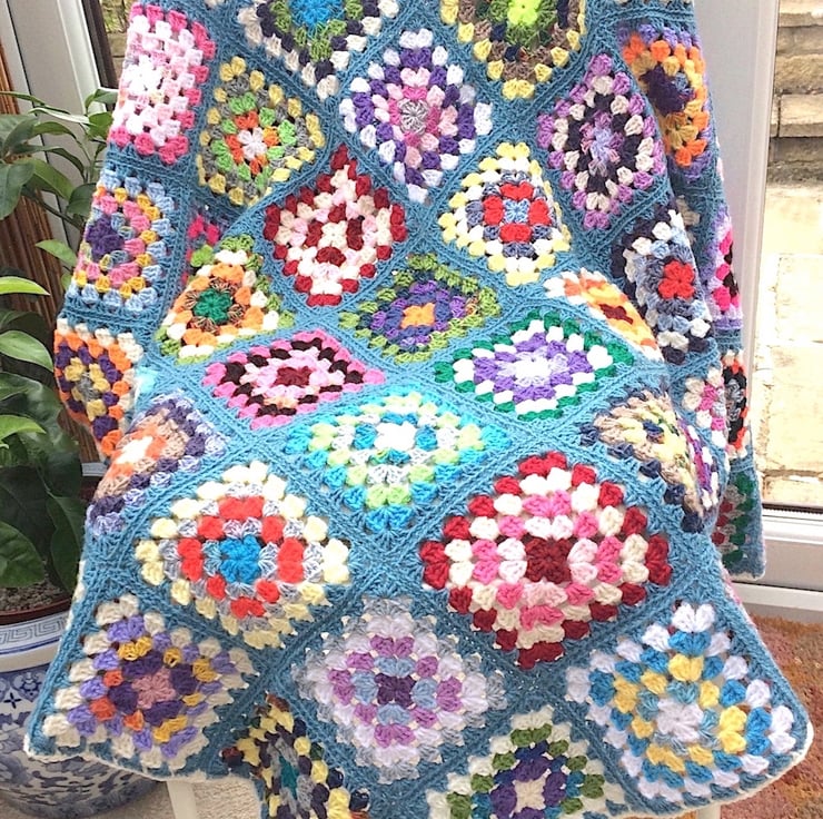 This lovely granny square blanket is made with a lot of my favourite wool Sirdar country style which although is not 100% wool but has the feel of it. It has a soap stone row around every square and is stitched very carefully the same colour and has my signature 70's edge in white.. It is 50" x48" and is a lovely heavy weight.