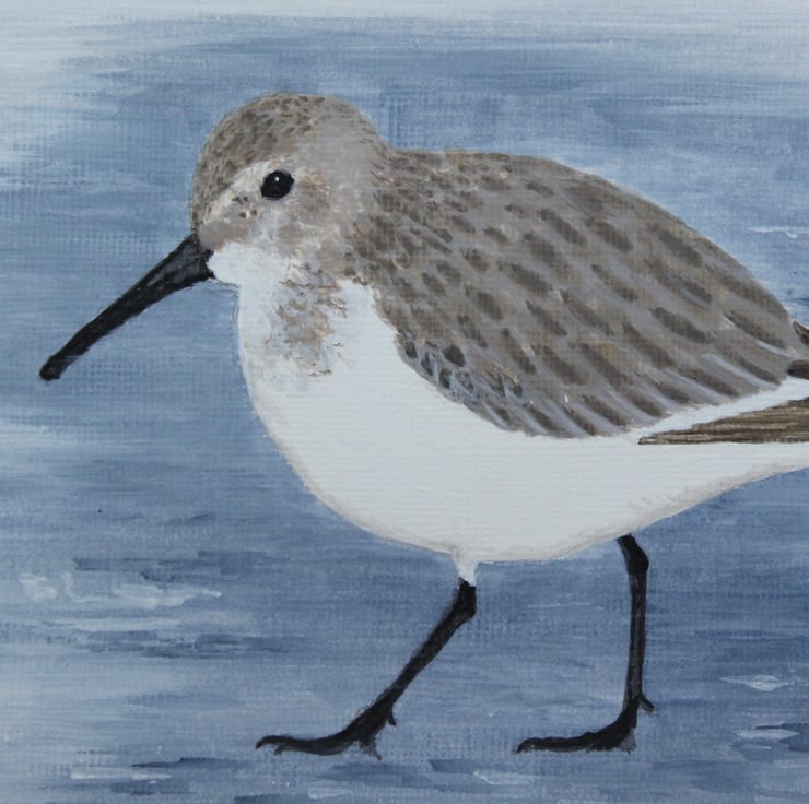 This is an original small painting of a dunlin. It is painted with artists acrylics in a similar style to my carved birds. It is not a feather perfect study but I try to catch the character of the bird and I am happy with the way this one turned out!