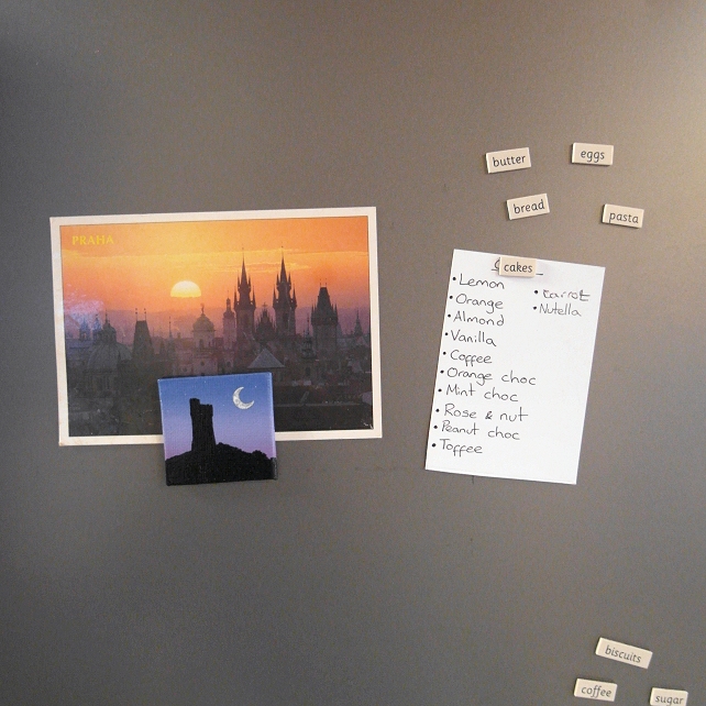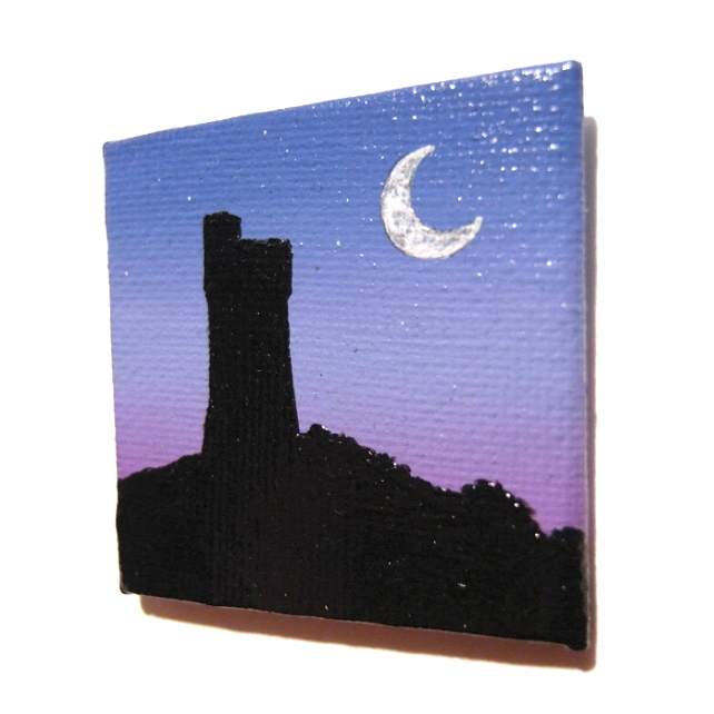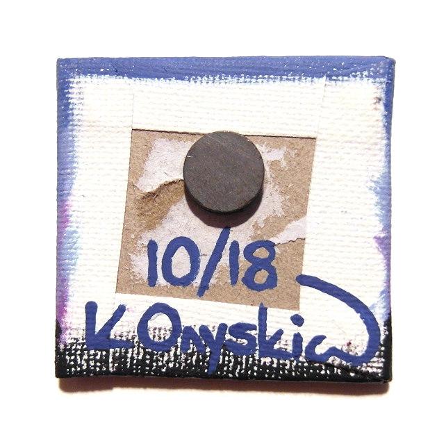 This is an original acrylic painting on a 5cm x 5cm (2" x 2") square canvas board, coated with a layer of clear varnish to make it more durable. A 12mm magnet is attached to the back so this little piece of art can stick on a fridge or other magnetic surface.