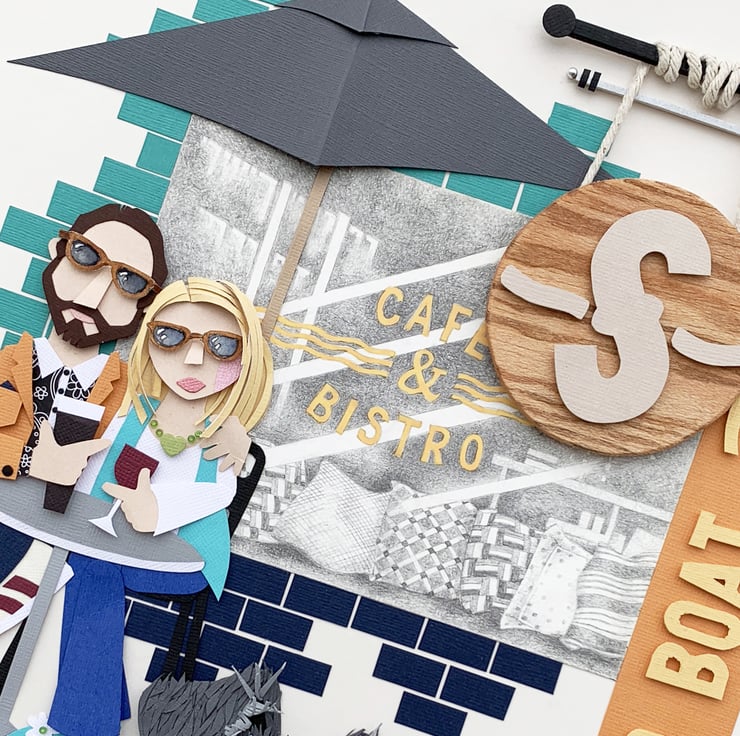The Sugar Boat, Helensburgh, illustrates the deconstructed nature of my work, where the feel & essence of the place is captured, rather than an everyday photographic likeness. Any business is suitable for the PaperWorks treatment & can include your logo & signage, as well as the many features that make your business stand out from the crowd.