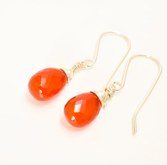 The rich orange of these Carnelian briolettes is utterly gorgeous. The stones are fabulous AA grade quality, carefully faceted by the master gemstone cutters I go to in Jaipur, india (Jaipur is the gemstone cutting capital of the world). The colour has to be seen to be believed, it's a clear, intense orange and the faceting makes the light catch it so it practically shines. Really beautiful. They've been carefully wrapped by me in Sterling Silver wire.