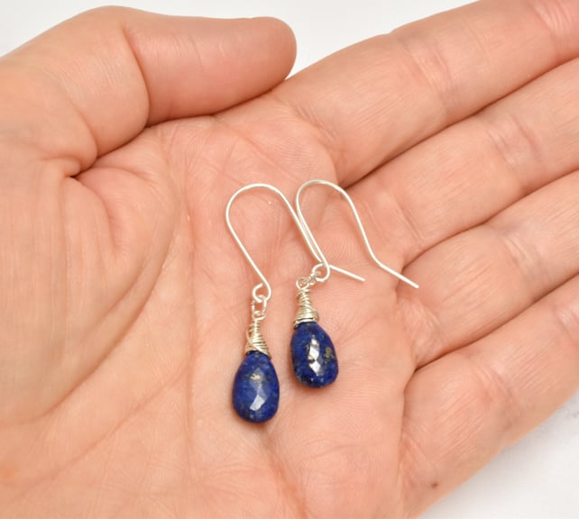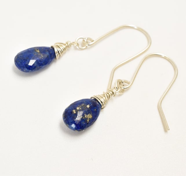 Gorgeous Dark Blue Lapis Lazuli Sterling Silver wrapped Briolette Earrings