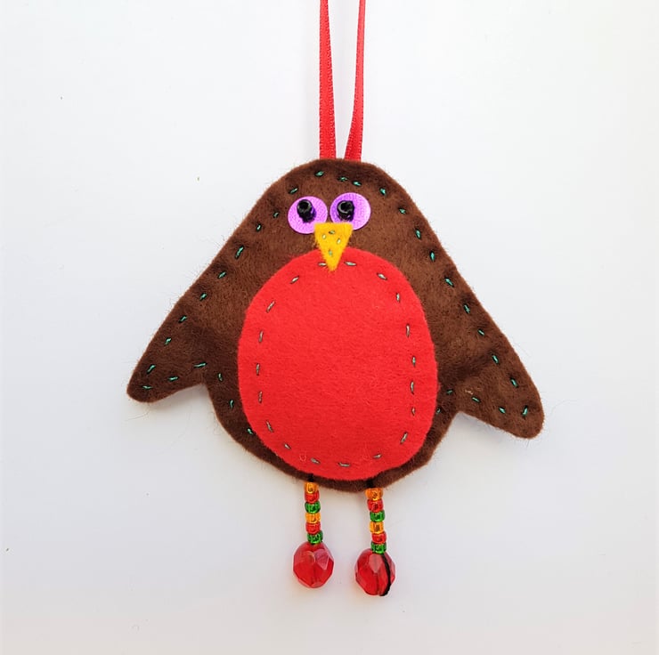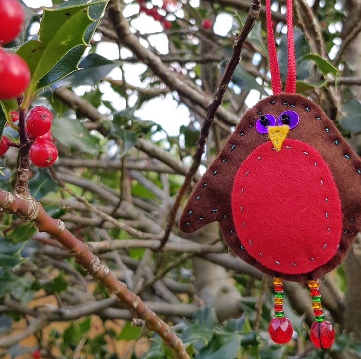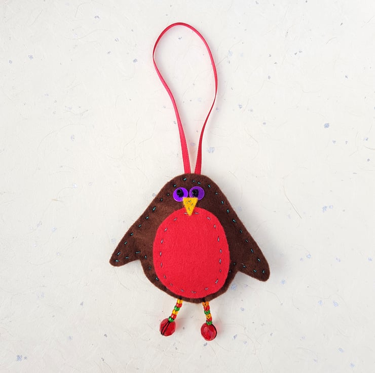 This quirkly robin decoration is an original PeachTreePig design. I have selected the materials, handcut the felt pieces, and hand sewn them into a joyful Christmas character.