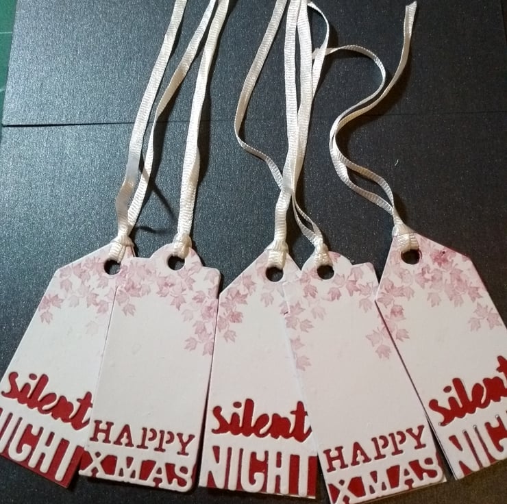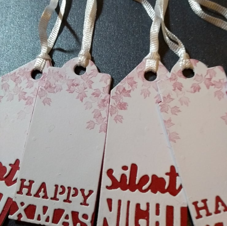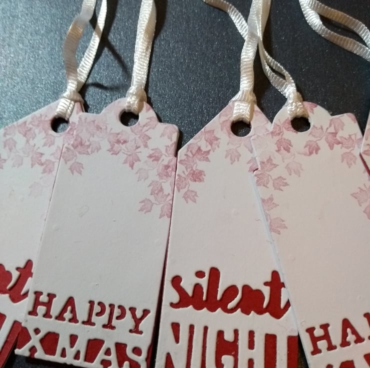 Made using quality card. Assorted mix of happy xmasy and silent night. Hand stamped with ivy leaves.