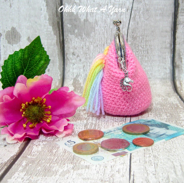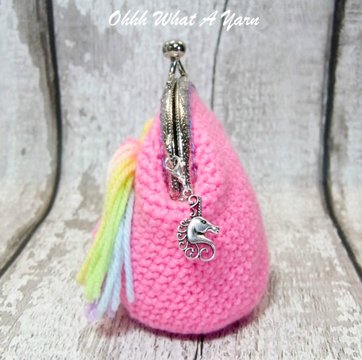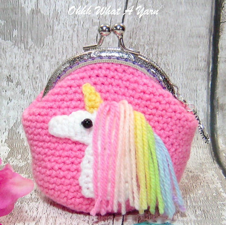 Crochet, crocheted unicorn coin purse. This gorgeous unicorn coin purse is crocheted using 100% acrylic yarns.
